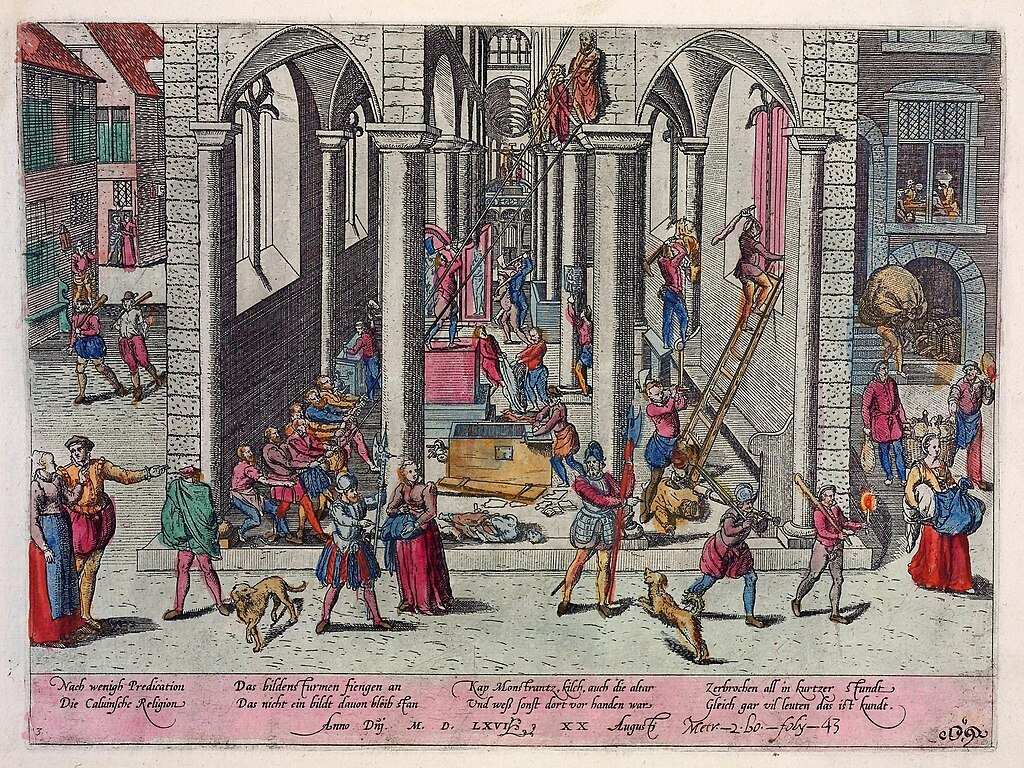 De Beeldenstorm duurde niet langer dan 3 maanden, van augustus tot november 1566. In die periode zijn honderden eeuwenoude kunstschatten vernietigd, bibliotheken afgebrand, kerken en abdijen geplunderd. Net al de jihadisten in Palmyra werden de reformanten geïnspireerd door hun interpretatie van een heilig geacht geschrift. In werkelijkheid had de Beeldenstorm maar één doel. Door het vernietigen van de symbolen van de macht, hoopte men de daadwerkelijke macht van de Katholiek kerk die daarachter verscholen ging te breken. Uiteindelijk zorgde deze uitwas tot de komst van de ‘IJzeren Hertog van Alva’ en een jarenlange bloederige Spaanse terreur.